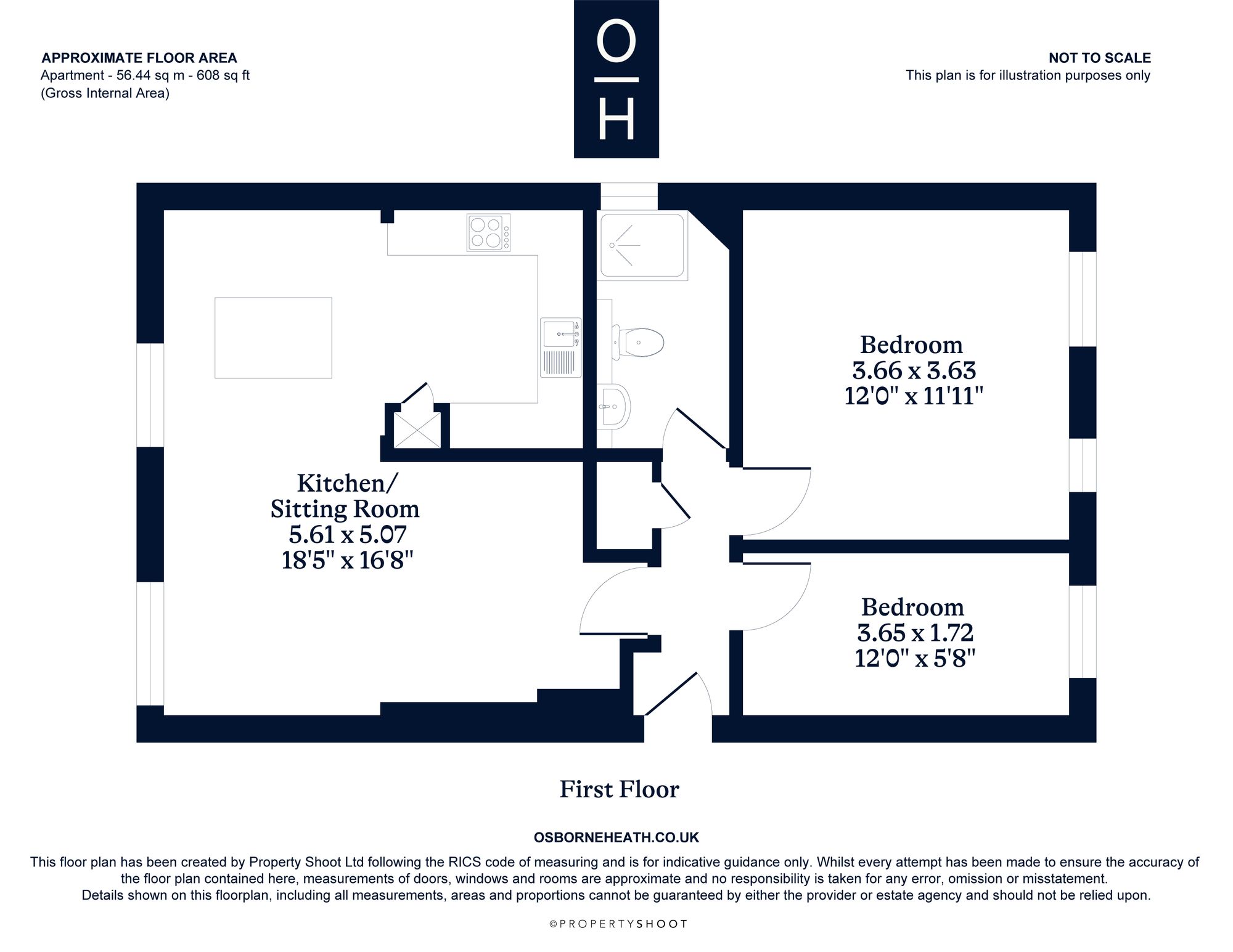 This first floor apartment has an open-plan kitchen, living and dining area with breakfast bar, two bedrooms, modern shower room and a loft.