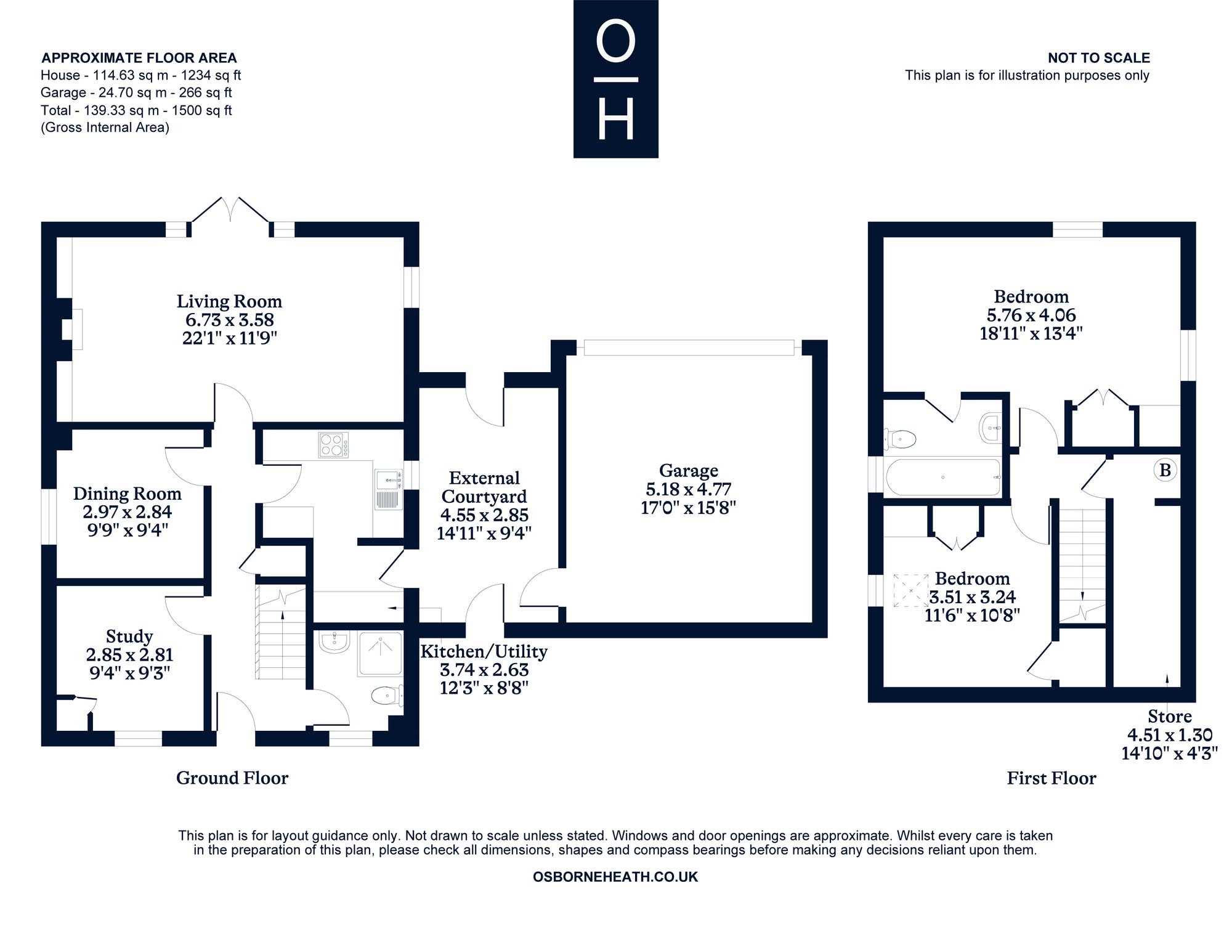 The first floor has two double bedrooms and a bathroom.
