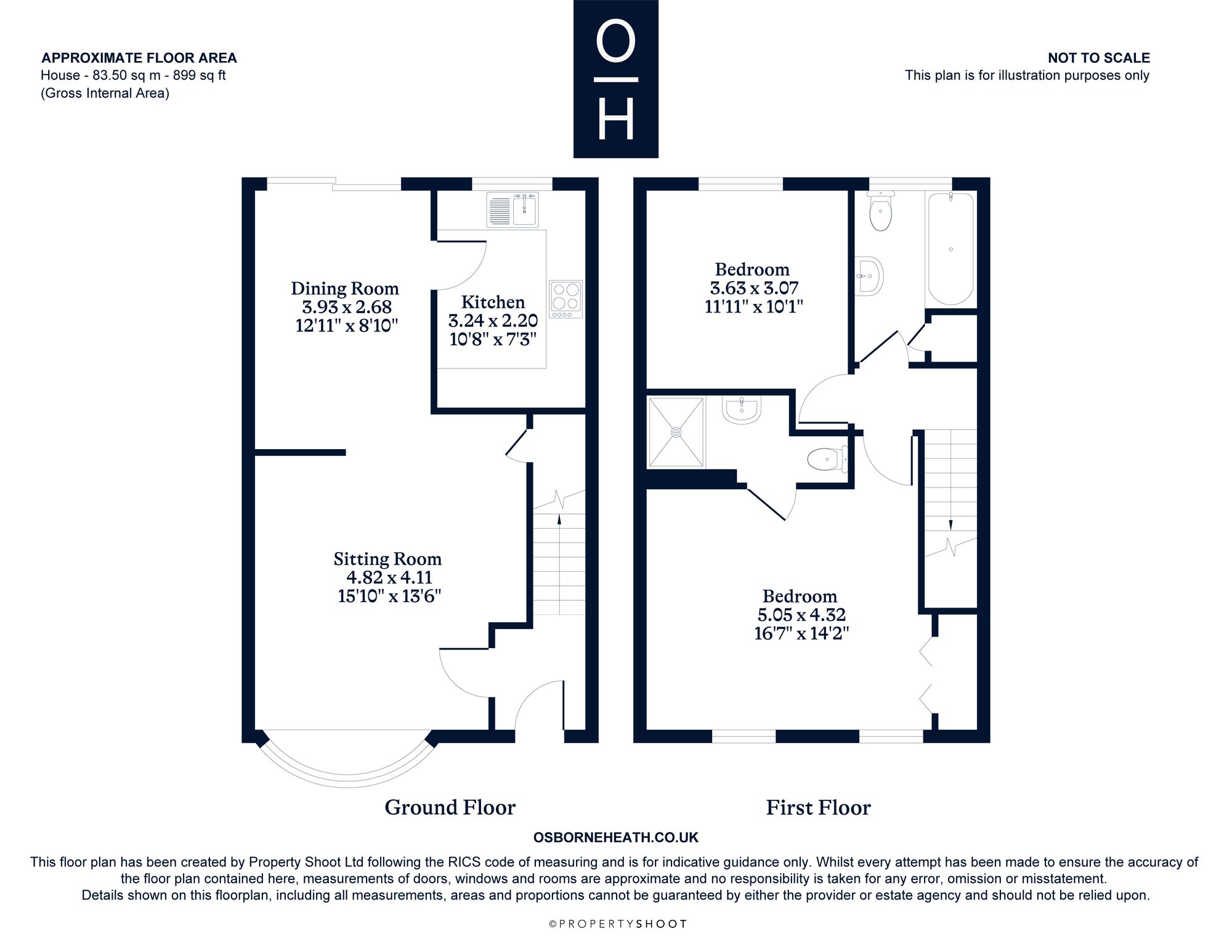 Upstairs there is the principal bedroom with built-in wardrobes and an en suite shower room, second double bedroom and a bathroom.